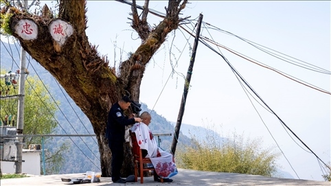 西藏日喀則邊境管理支隊(duì)立新邊境派出所民警正在為轄區(qū)老人理發(fā)。人民網(wǎng)記者唐宋攝