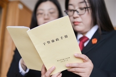 走進煙臺中院,每一名干警手中都有一本廉潔手冊,里面有防止干預司法“三個規(guī)定”和新時代政法干警“十個嚴禁”等內(nèi)容。