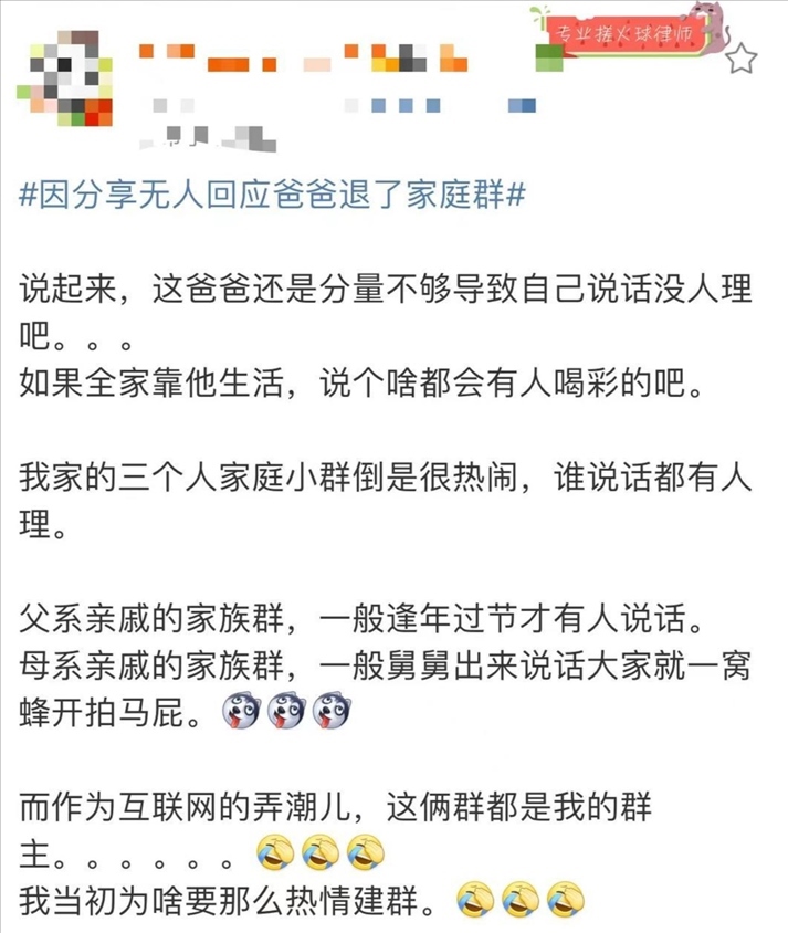因分享無(wú)人回應(yīng),爸爸退了家庭群!你的家庭群還熱鬧嗎?