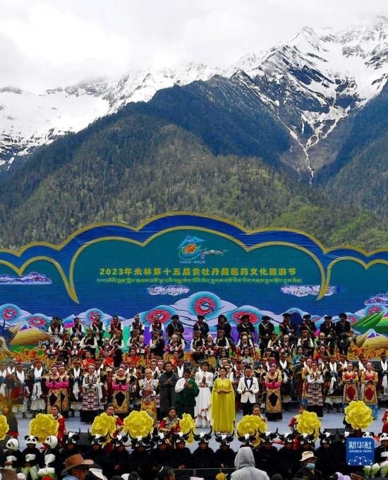 5月28日拍攝的米林市第十五屆黃牡丹藏醫(yī)藥文化旅游節(jié)開幕式現(xiàn)場。