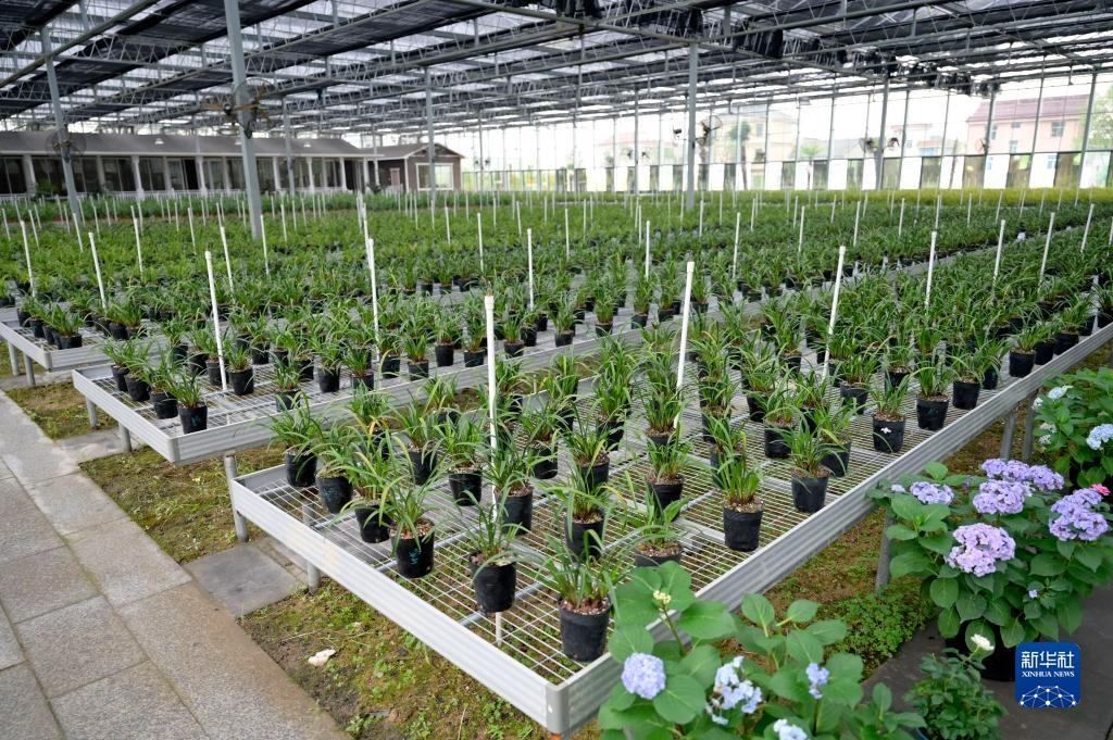 6月8日在浙江省紹興市柯橋區(qū)漓渚鎮(zhèn)棠棣村拍攝的蘭花數(shù)字工廠一景。新華社記者 才揚(yáng) 攝