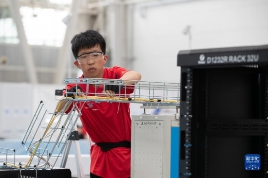 6月6日,選手在進行信息網絡布線項目比賽。