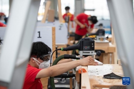 6月6日,選手在進行木工項目比賽。