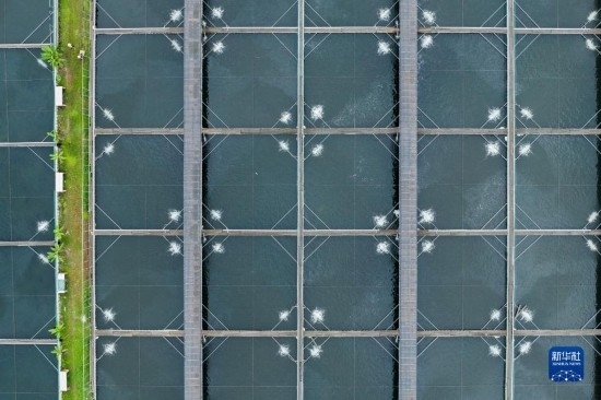 6月7日在中國清江(宜都)鱘魚谷養(yǎng)殖車間拍攝的鱘魚。