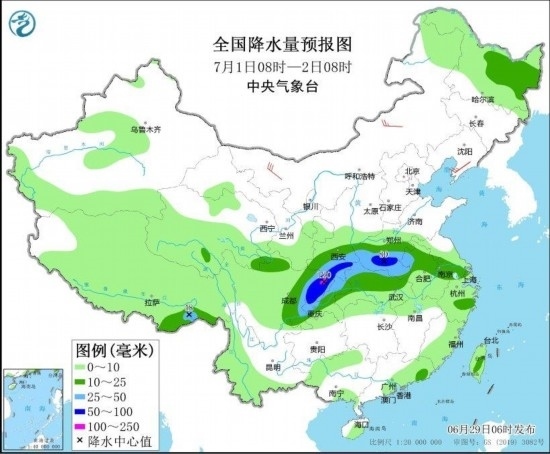 圖4 全國降水量預報圖(6月29日08時-30日08時) 圖自中央氣象臺網站