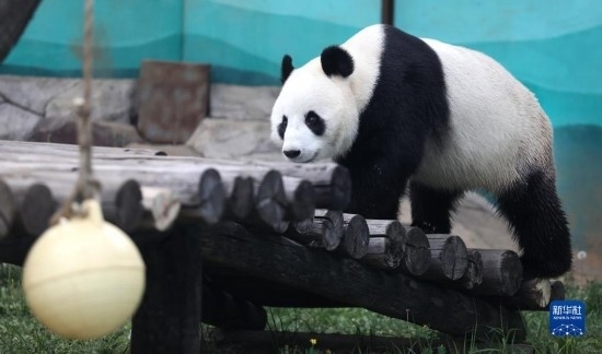 6月26日,“剛剛”在鞍山動(dòng)物園熊貓館里玩耍。