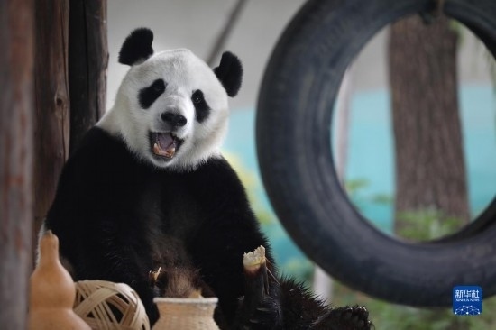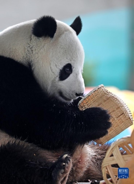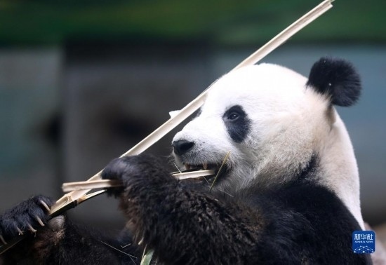 近日,遼寧地區(qū)持續(xù)高溫,在飼養(yǎng)員的精心照料下,鞍山動(dòng)物園里的5歲大熊貓“剛剛”一邊吹著空調(diào)降溫,一邊享用新鮮竹子、水果、胡蘿卜、蜂蜜等,清涼度夏。
