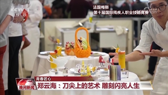 功夫不負(fù)有心人,鄭云海的雕刻技藝不斷精進,他也開始自主設(shè)計創(chuàng)作作品,并斬獲了多項國內(nèi)比賽冠軍。今年3月,在法國梅斯舉辦的第十屆國際殘疾人職業(yè)技能競賽食品雕刻項目比賽中,他奪得金牌,成為食品雕刻屆的世界冠軍。
