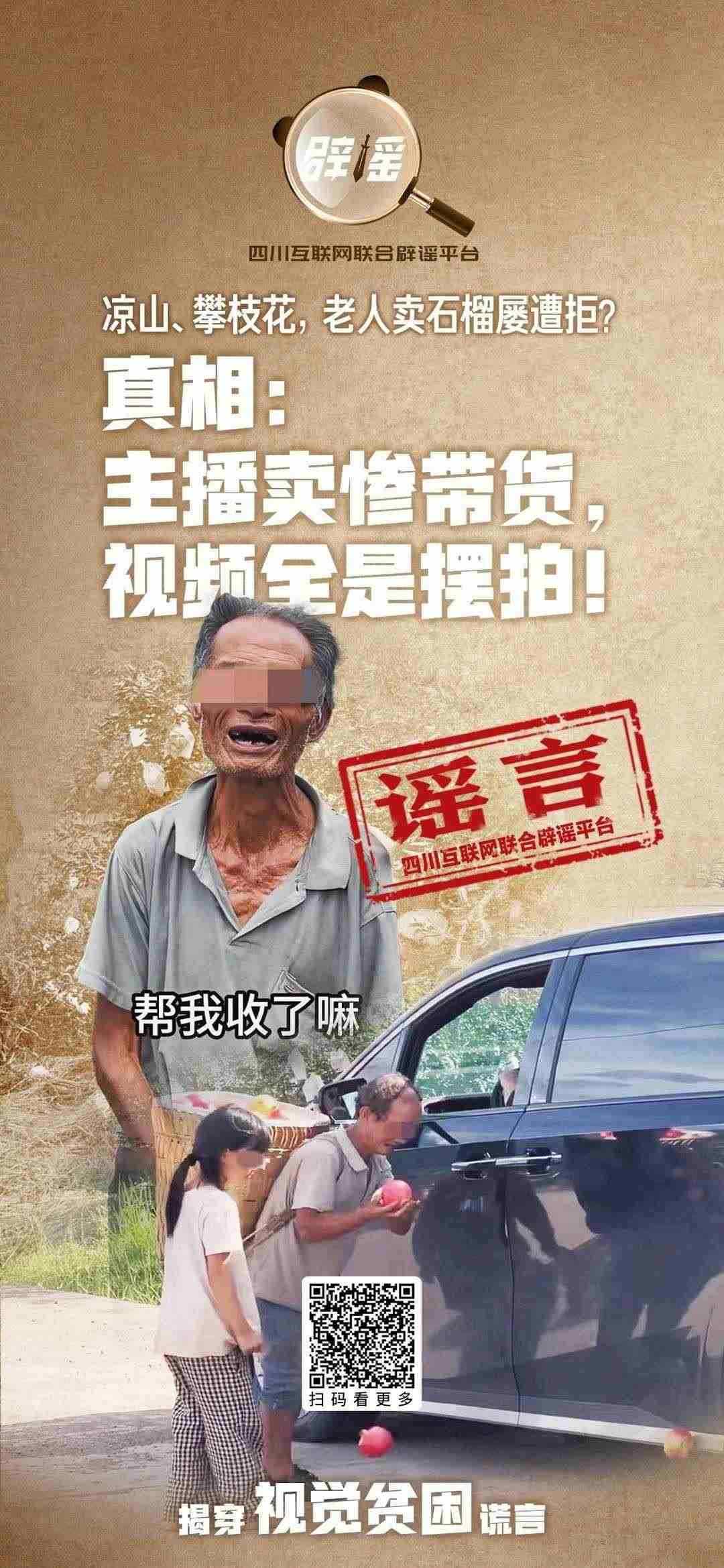 9月,四川省涼山州、攀枝花市的石榴進入成熟季。在短視頻平臺上,出現(xiàn)了多段催淚短視頻:老人向路邊車輛推銷石榴,但車內(nèi)人員卻將石榴扔到車外,老人默默將石榴撿起,彎腰鞠躬……這些令人心酸的視頻,引發(fā)網(wǎng)友關(guān)注同情,還有多家網(wǎng)絡(luò)賬號將視頻內(nèi)容作為新聞進行了轉(zhuǎn)發(fā)。
