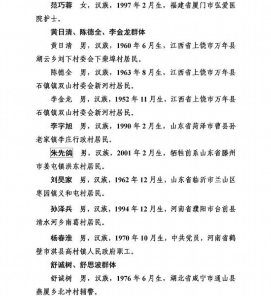 上榜勇士中,有從高橋上跳水救人導(dǎo)致胸椎骨折的外賣小哥彭清林和另一位高橋跳水救人的中學(xué)教師丁成闖;有冒著9級(jí)大風(fēng)在海上營(yíng)救遇險(xiǎn)臺(tái)胞的漁民蔡芳輪、蔡勝利;有放棄登頂珠峰機(jī)會(huì)而救助同胞的珠峰登山隊(duì)隊(duì)員范江濤、謝如祥;有萬(wàn)米高空機(jī)艙里搶救瀕危病人的護(hù)士長(zhǎng)劉素琴;有勇斗盜賊被刺幾刀仍不退縮的江蘇村民李培武;有身患癌癥卻橫渡淥江河救人的樂(lè)觀大姐鐘慧慈;有跳進(jìn)充滿沼氣深井救人致多器官感染的山東小伙李字旭;更有冒死救援落水群眾壯烈犧牲的潘燦燦、朱先鴿、尹新朋、喬軍、徐毅暉、楊華清、陳江七位勇士,讓我們致以最崇高的敬意!