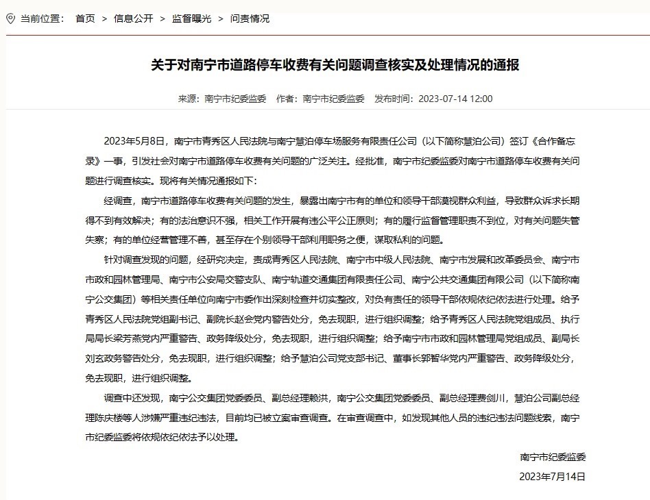 ·南寧通報(bào)道路停車(chē)收費(fèi)有關(guān)問(wèn)題處理情況:4人被免職。