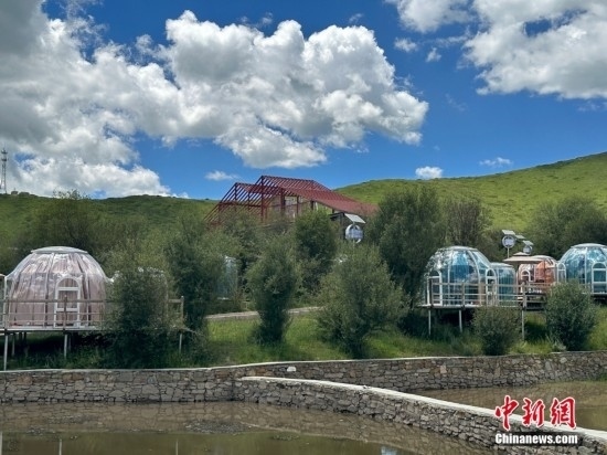 近年來,紅原縣牦?,F(xiàn)代農(nóng)業(yè)園區(qū)堅持牧旅融合發(fā)展,如今,供游客休閑的咖啡屋、星空房等設施正在如火如荼地建設中。圖為園區(qū)打造的星空房。