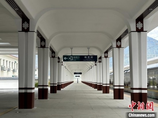 圖為林芝站站臺(tái)。錢姣姣 攝
