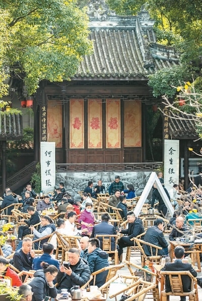 7月的最后一個周末,金瑾約上同事來了一場“說走就走”的旅行,從北京飛抵成都,位于成都人民公園里的鶴鳴茶社是她們的第一站?!昂芏喑啥悸糜喂ヂ远继峒苞Q鳴茶社,我一直很想去那里體驗成都的‘慢生活’。”金瑾說,坐在竹椅子上,面前擺著白瓷蓋碗茶,身邊有人“擺龍門陣”,不時有掏耳朵的手藝人在身旁茶座間穿行?!霸谶@里待上一整天,‘巴適得板’!”