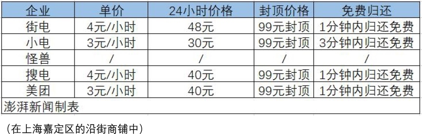上海的共享充電寶如何收費?澎湃新聞記者對各大品牌的共享充電寶價格做出統(tǒng)計。