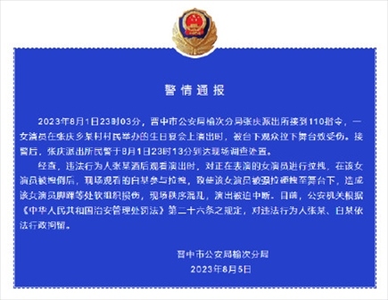 ·山西晉中警方通報(bào)女演員被觀眾拉下舞臺致傷:兩人被行拘。