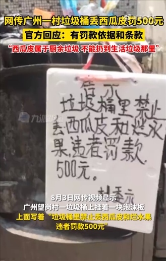 ·官方回應(yīng)網(wǎng)傳垃圾桶丟西瓜皮罰500元:有罰款依據(jù)和條款,西瓜皮屬于廚余垃圾。