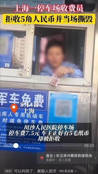 ·上海一醫(yī)院停車場收費(fèi)人員拒收5角紙幣并撕毀,被行政處罰。