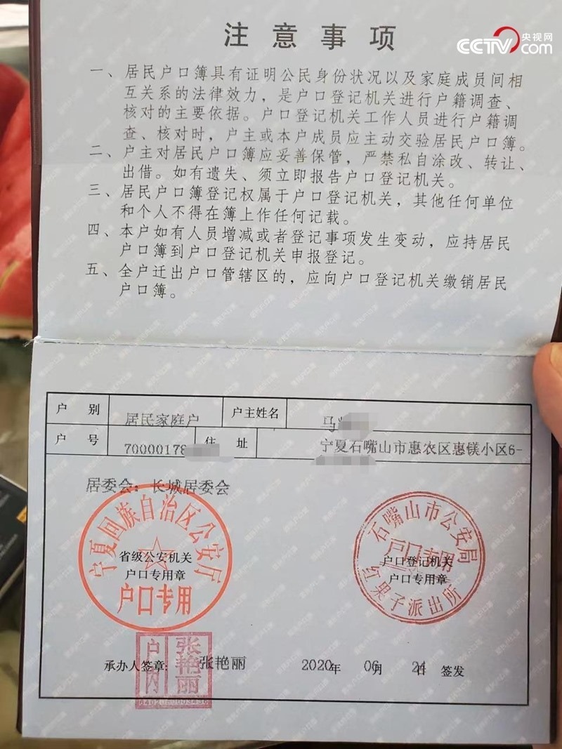 馬明家的新戶口本(中國之聲記者任夢(mèng)巖 攝)