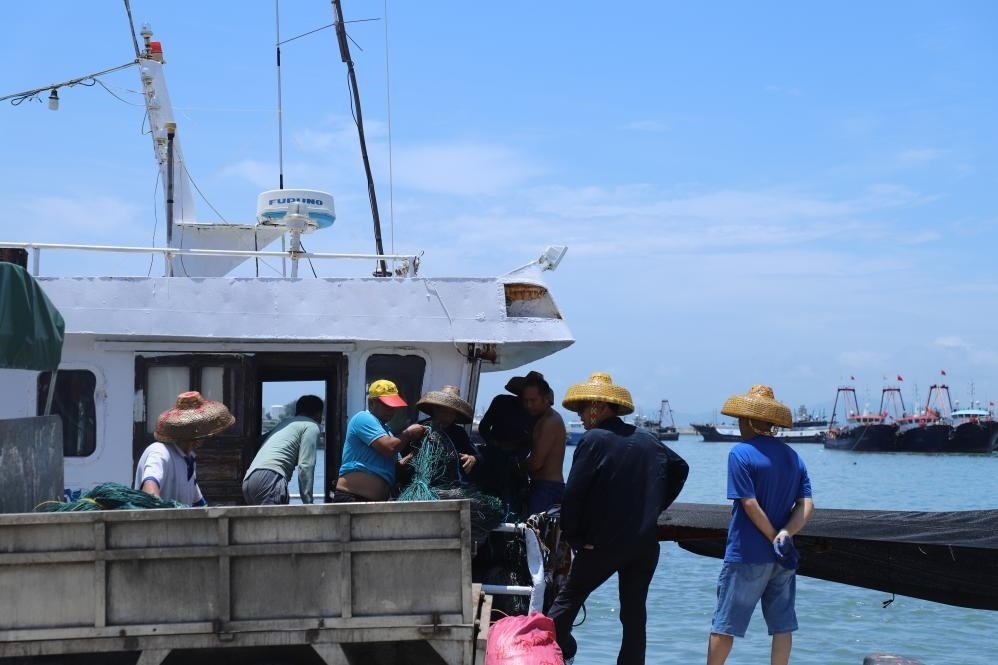 8月16日上午,溫潤(rùn)的海風(fēng)輕拂海面,一排排漁船??吭陂l坡港海灣,汽笛聲陣陣起伏。休息了三個(gè)半月的漁民鄭建華坐在船頭,正翹首以盼正午時(shí)分開(kāi)漁號(hào)角的吹響。