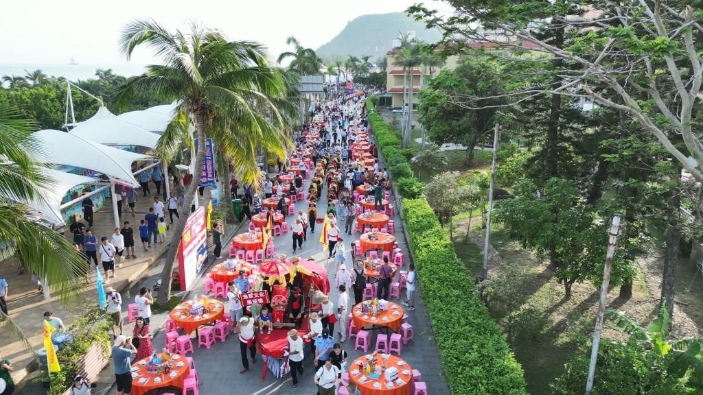 上千桌宴席沿街?jǐn)[開(kāi),來(lái)自五湖四海的游客和當(dāng)?shù)貪O民們歡聚一堂,沐浴著星光與海風(fēng),從五柳紅古魚,到海膽海鮮飯,一道道漁家美食端上餐桌,讓食客品嘗舌尖美味,感受來(lái)自海陵島的獨(dú)特風(fēng)味。