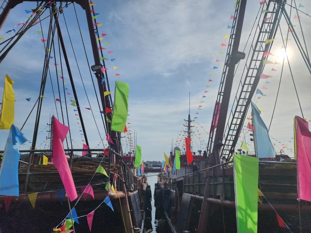 8月15日,開(kāi)漁前夕,等待出海的漁船。新華社記者 歐陽(yáng)建嘉 攝