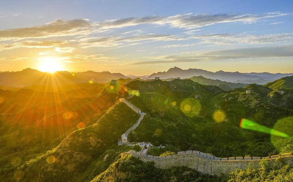 8月18日,河北承德,傍晚時分,灤平縣金山嶺長城景區(qū),夕陽晚霞,景美如畫。