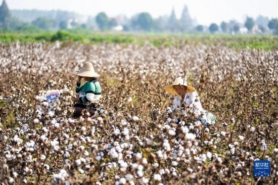 金秋十月,湖南省益陽市南縣種植的4萬余畝棉花相繼進(jìn)入采收季,當(dāng)?shù)孛揶r(nóng)趁著晴好天氣采摘棉花,田間地頭一片忙碌的景象。