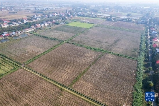 這是10月15日在南縣浪拔湖鎮(zhèn)太陽山村拍攝的棉花田(無人機(jī)照片)。