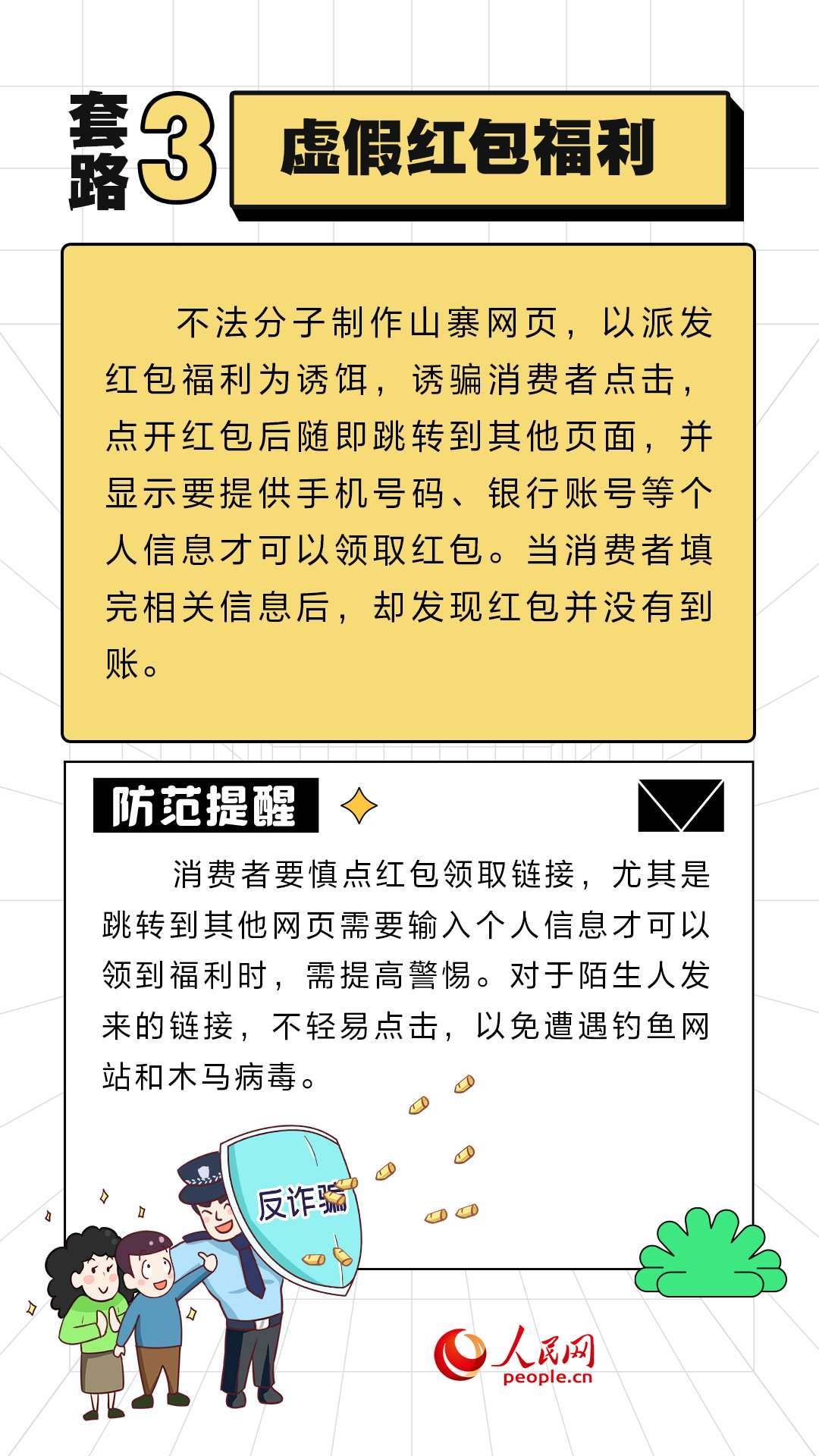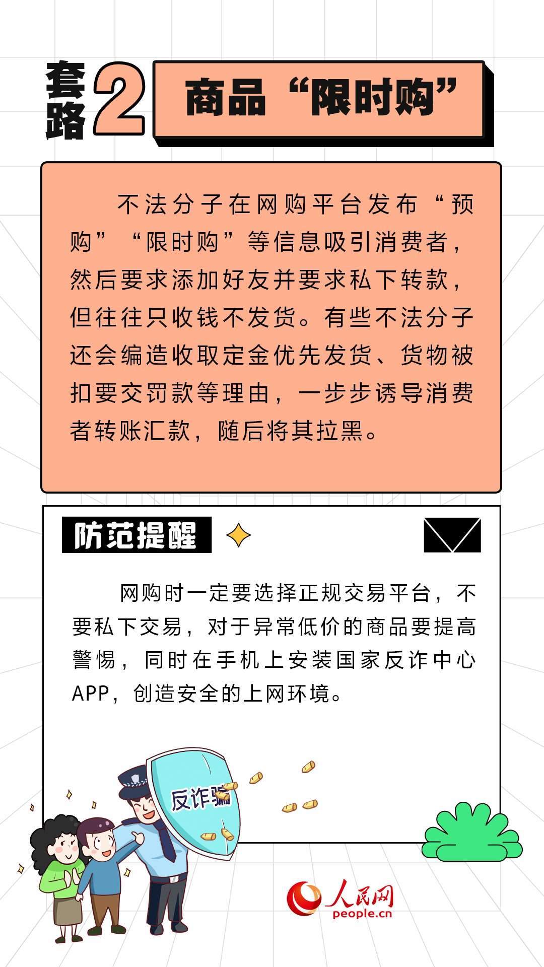 人民網(wǎng)北京11月10日電 (周靜圓)近期,“雙11”促銷活動如火如荼地進(jìn)行中。不法分子也伺機而動,設(shè)置各式各樣陷阱。人民網(wǎng)“求真”欄目整理了六種常見的套路,提醒大家提高警惕,守好“錢袋子”。