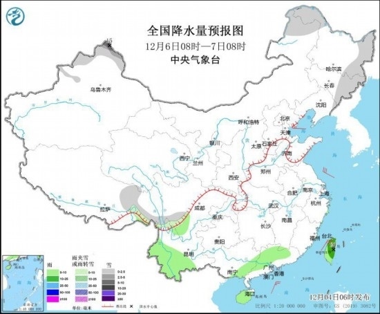 全國降水量預(yù)報圖(12月6日08時-7日08時)