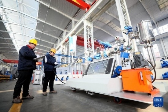 12月21日,在位于隆堯縣的河北遠(yuǎn)大閥門集團有限公司大口徑車間,工人在查看智能調(diào)水設(shè)備運行情況。