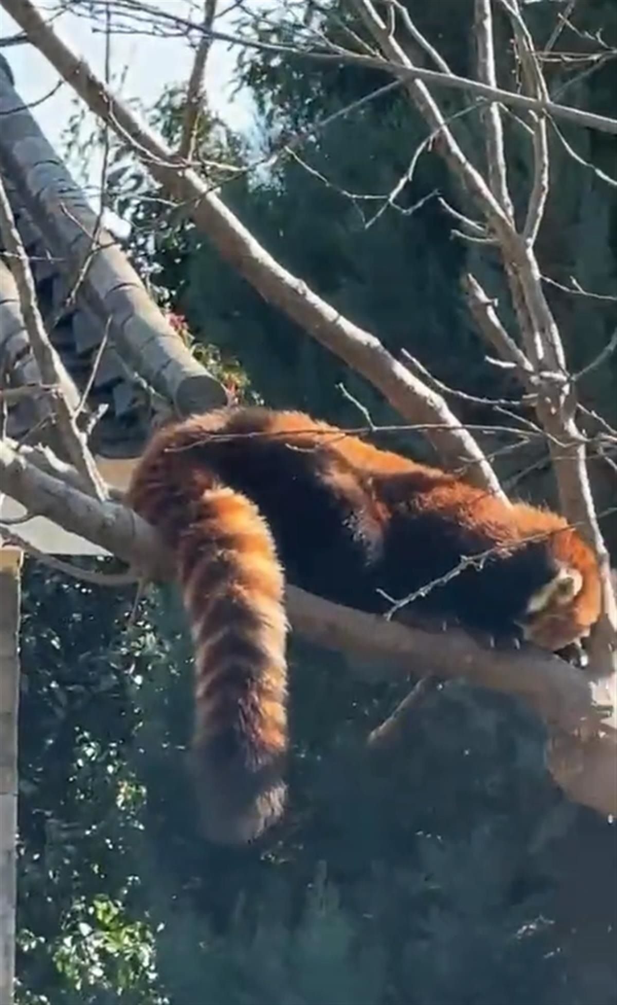 1月25日上午,極目新聞?dòng)浾呗?lián)系上視頻發(fā)布者,對方解釋稱,其實(shí)動(dòng)物園有兩只小熊貓,它們都藏在樹上了,自己第一眼沒看到,有些驚訝。其中一只小熊貓?jiān)谝曨l的最后三秒也出現(xiàn)了。