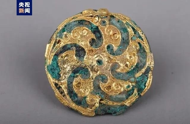 在M1的120余件出土器物中,還有制作精美的銅包金牌飾、金“五朱”等裝飾品,以及色澤瑩潤的玉帶鉤、玉劍璏(固定在劍鞘上,供穿系革帶以聯(lián)結(jié)腰間的器物)等玉器。不過,根據(jù)玉帶鉤、玉劍璏的樣式,考古工作者判斷,它們并非當(dāng)時的器物,而是戰(zhàn)國時期的物件,有可能是墓主人的“傳家寶”。