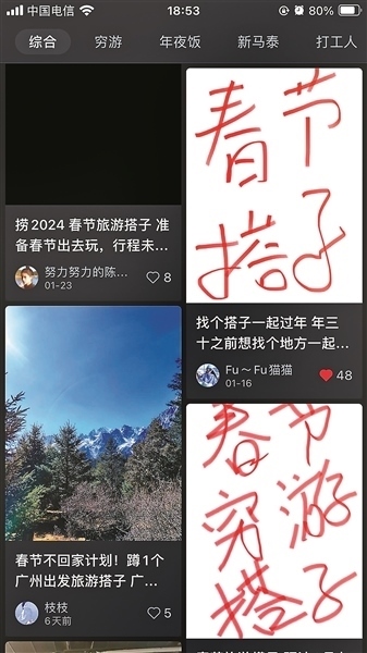 網(wǎng)友在社交媒體上尋找“過(guò)年搭子”