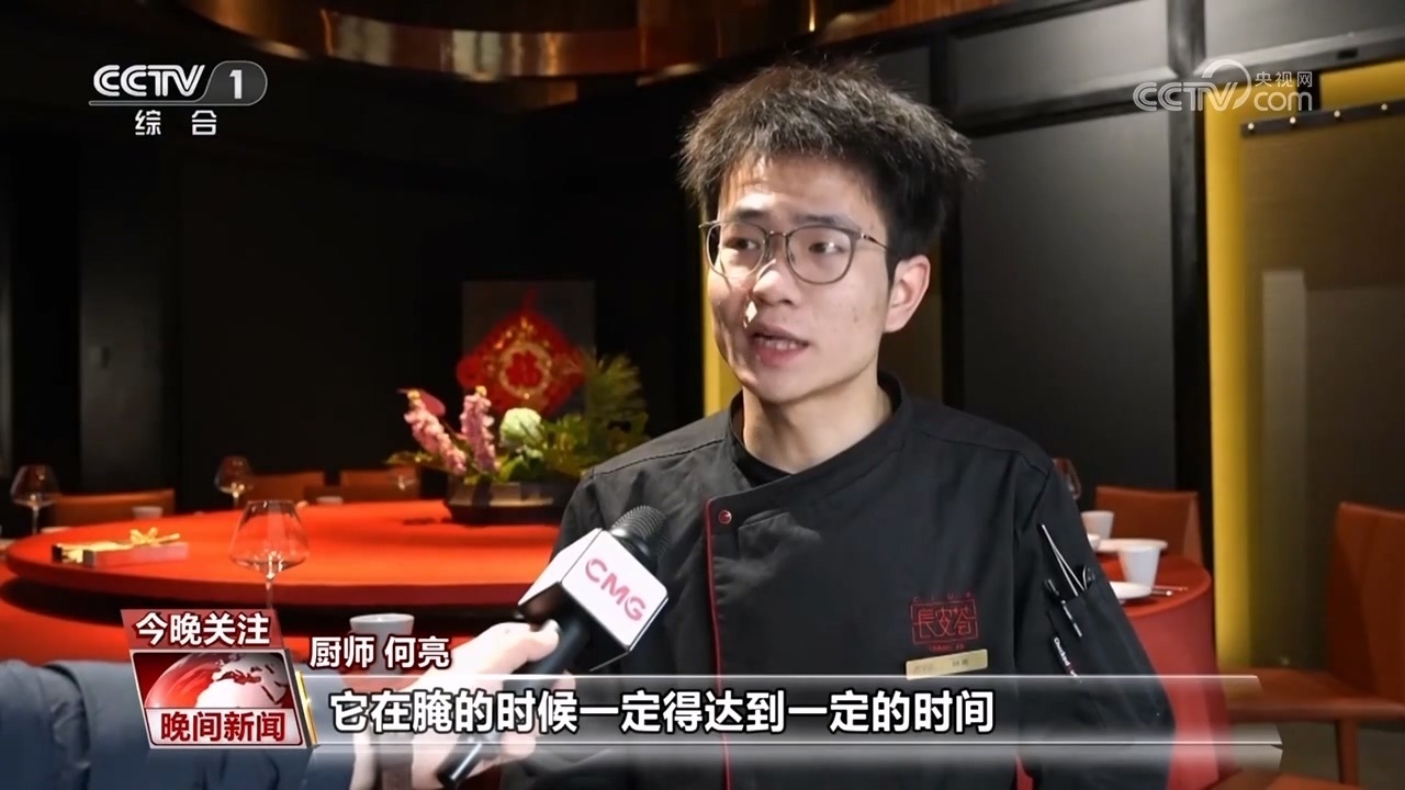 廚師 何亮:它在腌的時候一定要達(dá)到一定的時間,需要用一些香辛料,或者花椒鹽一塊去腌制它,要在十二個小時左右。蒸制的時候需要我們提前調(diào)制湯,它需要蒸兩個小時泡六個小時,我們提前一天完成其他的三道工序。