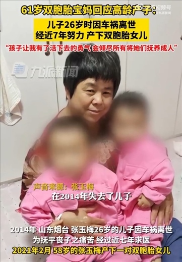 ·61歲雙胞胎寶媽回應(yīng)高齡產(chǎn)子:兒子26歲時(shí)因車(chē)禍去世,兩個(gè)孩子給了我活下去的勇氣,會(huì)傾盡所有將兩個(gè)孩子撫養(yǎng)成人。