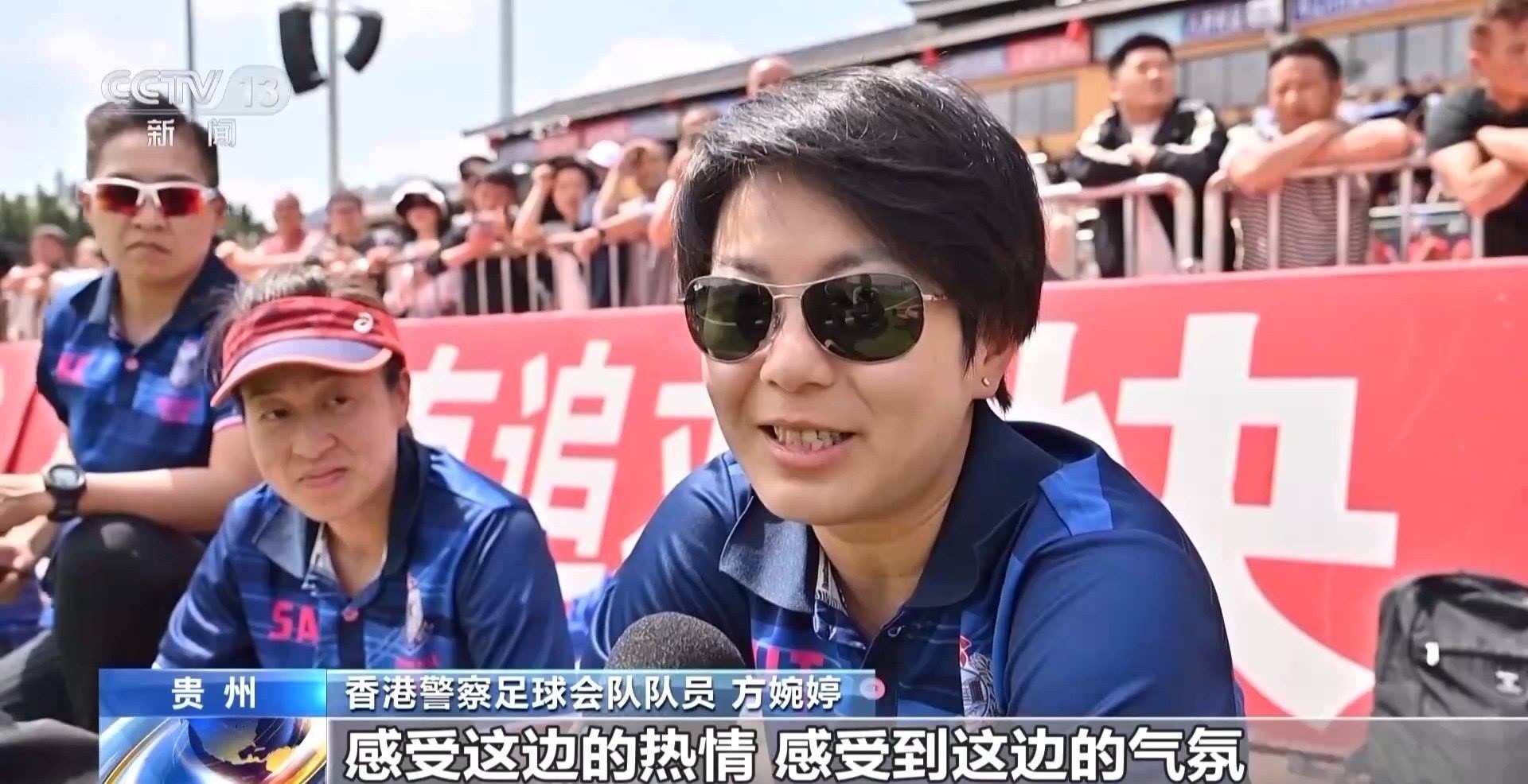 香港警察足球會隊隊員 方婉婷:感受到這邊的熱情,感受到這邊的氣氛,這邊大家都很喜歡足球,觀眾也特別多。就是希望跟這邊“村超”,如果是女子隊的話,也希望跟她們有一些交流,然后感受快樂足球。