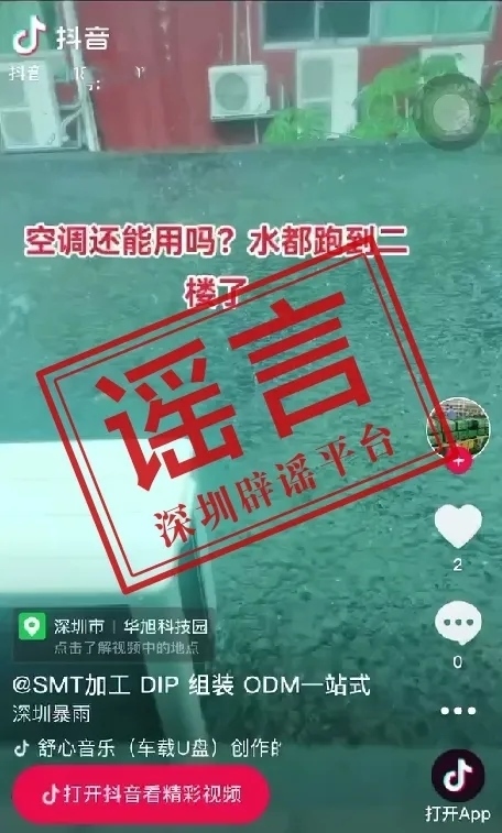 央視網(wǎng)消息:據(jù)“深圳網(wǎng)絡(luò)辟謠”微信公眾號(hào)消息,4月21日上午,有網(wǎng)帖稱(chēng)深圳“寶安區(qū)華旭科技園由于雨水過(guò)大,二樓存在大量積水”,短視頻顯示的地點(diǎn)是“寶安區(qū)華旭科技園”。據(jù)向應(yīng)急部門(mén)核查了解,信息不實(shí),該科技園并沒(méi)有發(fā)生網(wǎng)帖所稱(chēng)大量積水的情況。