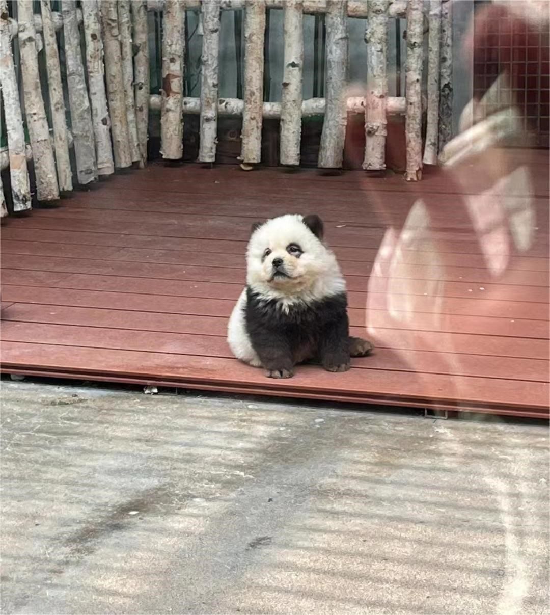 近日,有游客發(fā)視頻稱,在江蘇泰州動物園院內(nèi),出現(xiàn)了兩只奇怪的“熊貓”。其毛發(fā)黑白相間,外形與熊貓相似,但走起路來的姿勢卻像小狗。在網(wǎng)友曬出的泰州動物園門票上,印有“熊貓犬見面會”字樣,有人認為將狗染成熊貓的樣子吸引客流,有虛假宣傳之嫌。對此,泰州市醫(yī)藥高新區(qū)市場監(jiān)管局稽查大隊工作人員表示,“熊貓犬”沒有標注是熊貓,不涉及虛假宣傳。5月7日,澎湃記者聯(lián)系泰州動物園,工作人員稱,兩只“熊貓犬”是動物園領(lǐng)導(dǎo)引進來的,在引進的時候就已經(jīng)被染好色了,對于其他的細節(jié)并不清楚。