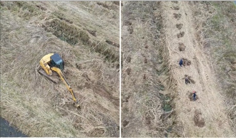 督察組暗查發(fā)現(xiàn),益陽市南洞庭湖省級自然保護區(qū)歐美黑楊已清退區(qū)域正在挖坑種樹。(督察組供圖)
