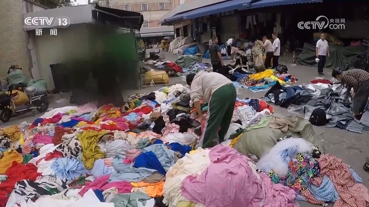 為了揭開這些“尾貨孤品”的真面目,記者來到了華南某地的一個(gè)全國有名的服裝尾貨批發(fā)集散地,對價(jià)格較低的幾個(gè)目標(biāo)市場進(jìn)行了調(diào)查,發(fā)現(xiàn)到處都打著“供直播間”的廣告。那么,供給“尾貨孤品”類直播間的貨,又在哪里呢?幾經(jīng)輾轉(zhuǎn),記者來到了一個(gè)叫“后山”的地方,看到很多衣服都在地上,現(xiàn)場環(huán)境臟亂差。