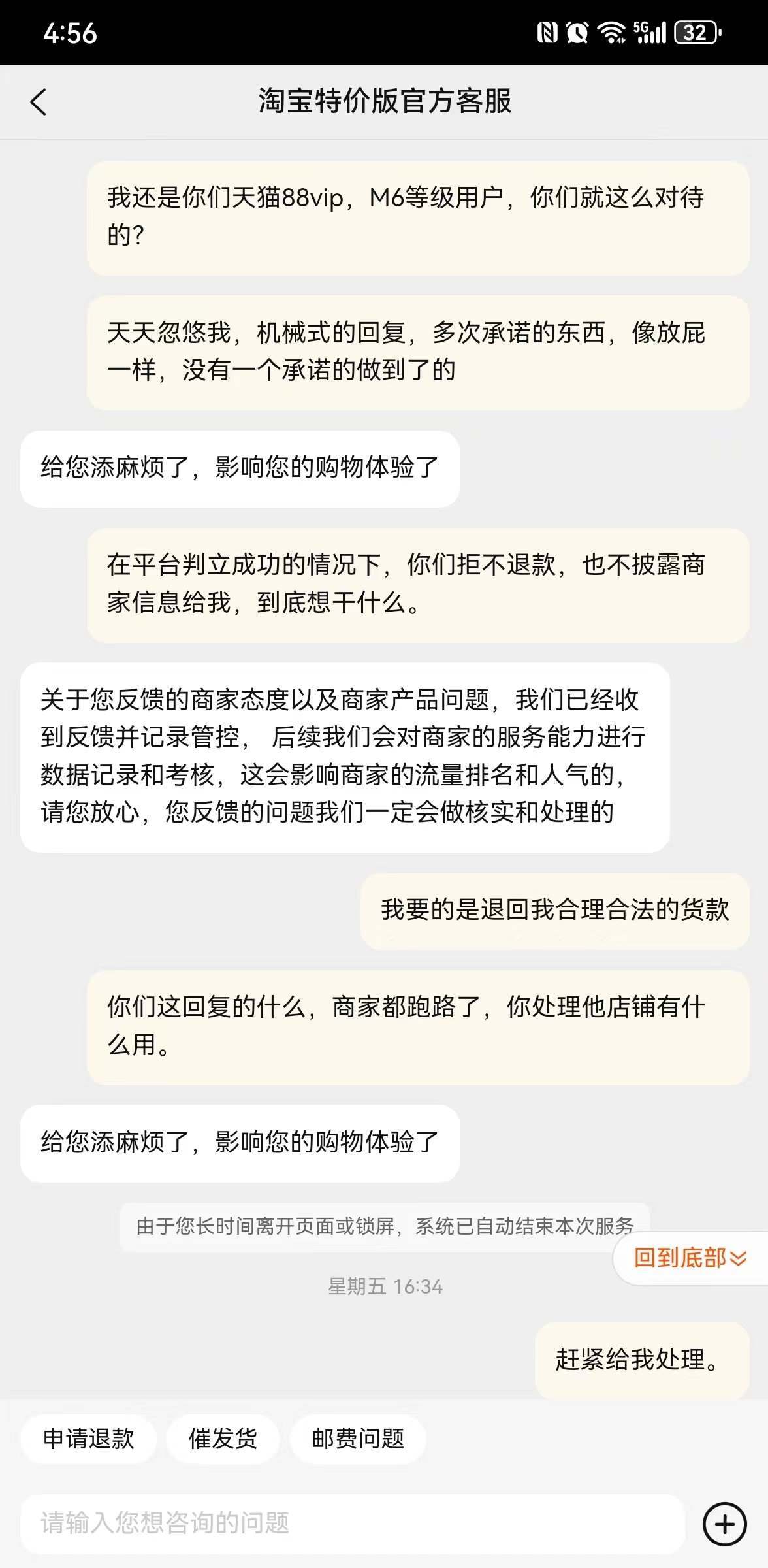 客服:這邊的話看著在給您處理中,這邊去幫您催促加急一下。