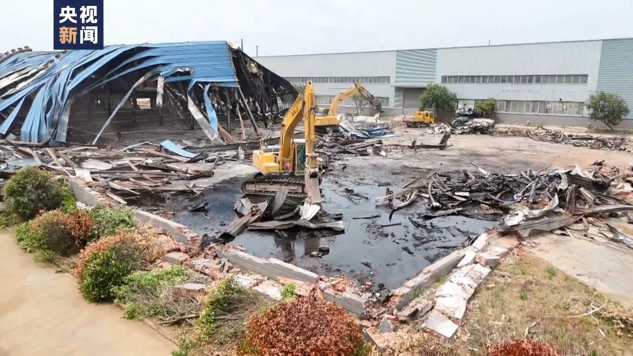 5月25日晚上7點(diǎn)多,總臺(tái)記者按照知情人的指引,趕往富信石油倉(cāng)庫(kù)所在地,全椒經(jīng)開區(qū)經(jīng)二路東側(cè)的三期標(biāo)準(zhǔn)化廠房調(diào)查。此處共有6棟廠房,占地42畝,于2012年建成,廠房歸全椒百盛金屬科技有限公司所有,現(xiàn)租賃給當(dāng)?shù)厮募移髽I(yè)使用。發(fā)生火災(zāi)的2號(hào)廠房,目前已被部分拆解。環(huán)境監(jiān)測(cè)人員正在現(xiàn)場(chǎng)提取污水樣本。一旁的庫(kù)房?jī)?nèi)仍然堆積了許多裝滿不明液體的塑料桶??諝庵袕浡瘫堑幕瘜W(xué)品氣味。