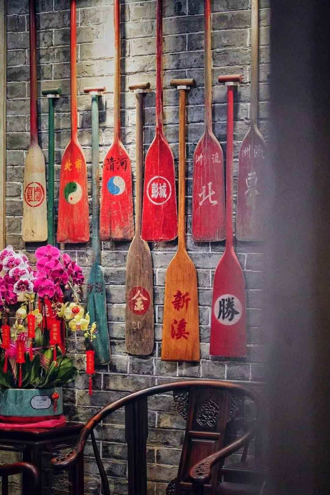 在張偉潮工作室的青磚墻上掛滿了劃龍舟所用的船槳?!皝砣↓堫^的人大多會送一面錦旗,我說不要錦旗,可以把你們不用的槳送給我?!边@些年張偉潮陸續(xù)收到了300多支船槳,在他看來,每一把槳都蘊含著自己隊伍、村落的故事,每一把都是獨一無二的,他要把船槳當作錦旗一樣高高地掛在墻上。