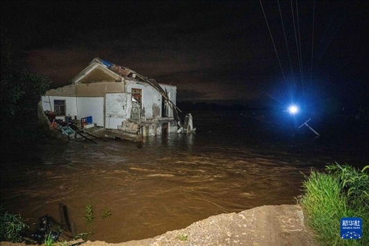 這是7月29日凌晨拍攝的湖南省湘潭縣易俗河鎮(zhèn)四新堤決口現(xiàn)場(chǎng)。新華社記者 陳思汗 攝