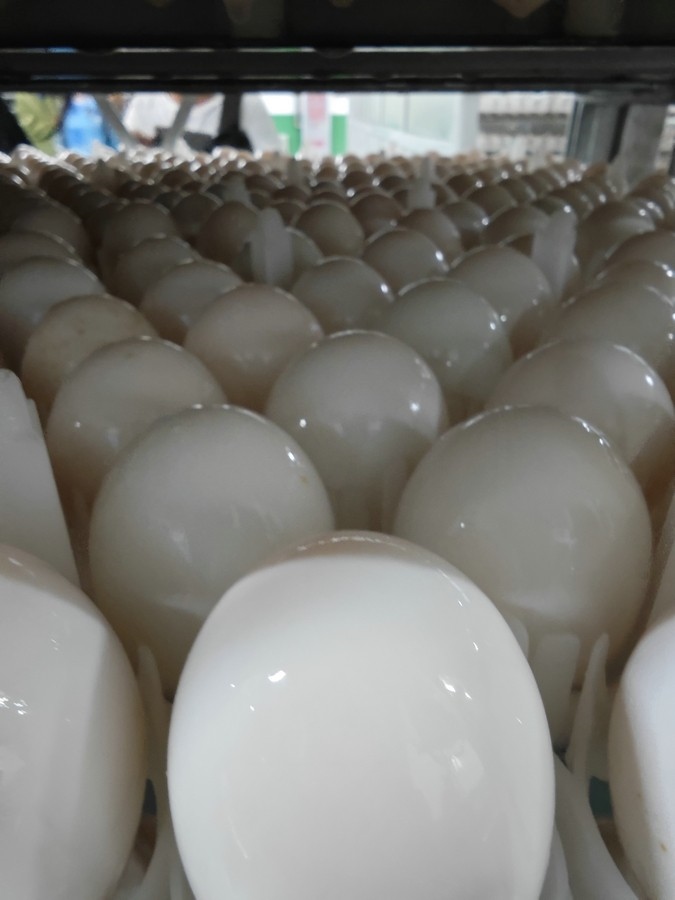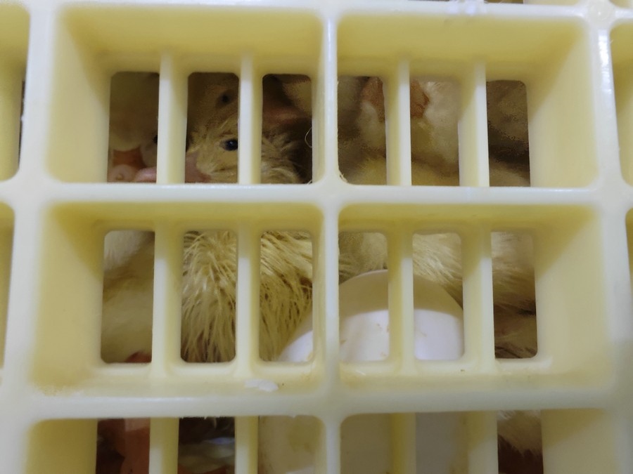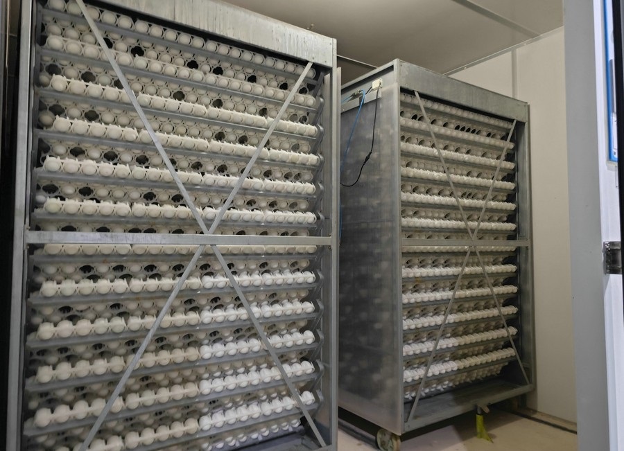 選蛋、稱重、儲(chǔ)蛋、洗蛋、孵化、落盤(pán)、出雛、出苗……經(jīng)過(guò)一系列程序,并經(jīng)過(guò)25天的孵化后,種蛋由孵化車轉(zhuǎn)移到出雛筐,在此等待3天,就完成了由蛋到苗的蛻變。