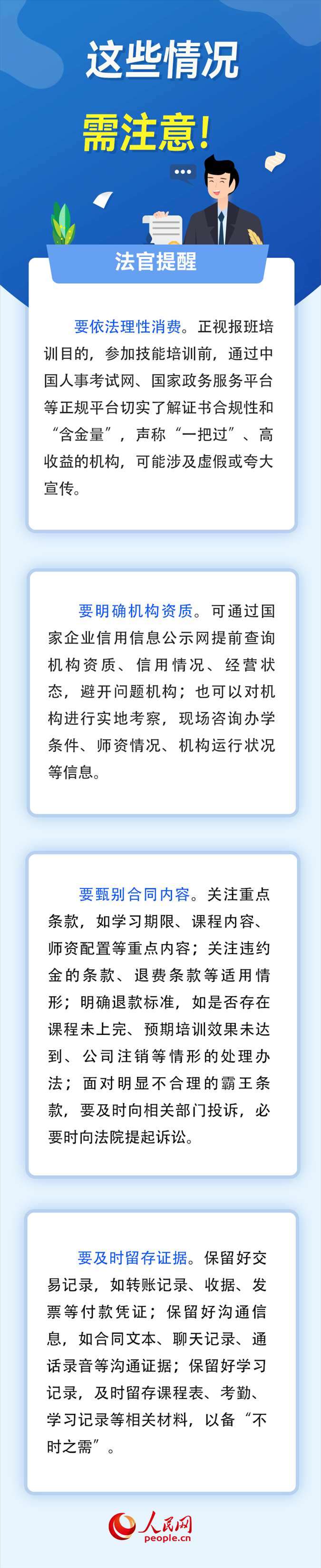 為掌握更多知識技能,“報培訓班”成為越來越多人的選擇。然而,部分培訓機構虛假宣傳、半路關門、拒不退費等套路讓消費者防不勝防。如何識別培訓報班中的“陷阱”、維護自身權益?對此,人民網(wǎng)采訪了北京市通州區(qū)人民法院法官助理李志峰。(高清揚 實習生 李澤華)