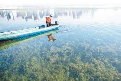 生態(tài)道湖北武漢市全方位治理東湖,建設(shè)了100多公里東湖綠道,通過種植水下森林等方式,讓東湖形成穩(wěn)定的水生植被群落,確保東湖水清岸綠。本報記者 吳 君攝
