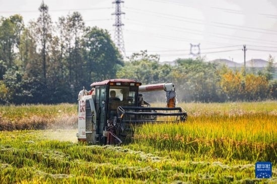 近日,浙江省湖州市吳興區(qū)東林鎮(zhèn)萬畝稻田迎來豐收季,當(dāng)?shù)胤N糧戶搶抓農(nóng)時(shí),趁著天氣晴好搶收水稻,確保顆粒歸倉。目前,東林鎮(zhèn)全鎮(zhèn)水稻種植面積20000余畝。